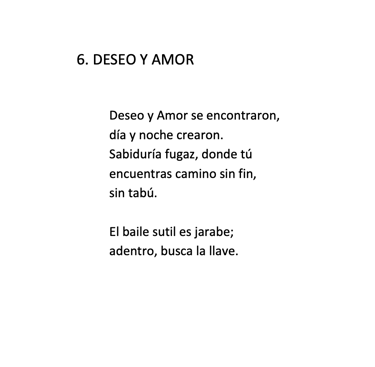 En este poema, quise expresar cómo, detrás de las palabras, Amor es el Creador que permanece oculto ante la Creación. Mientras tanto, la Creación misma es el deseo de revelar ese amor que yace en su interior.